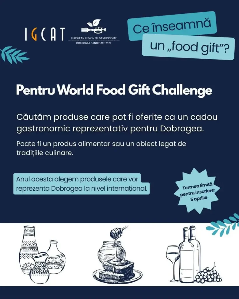 Local producers, artisans, and entrepreneurs from Dobrogea are invited to participate in the World Food Gift Challenge, an international competition that promotes the most representative gastronomic gifts from regions around the world.